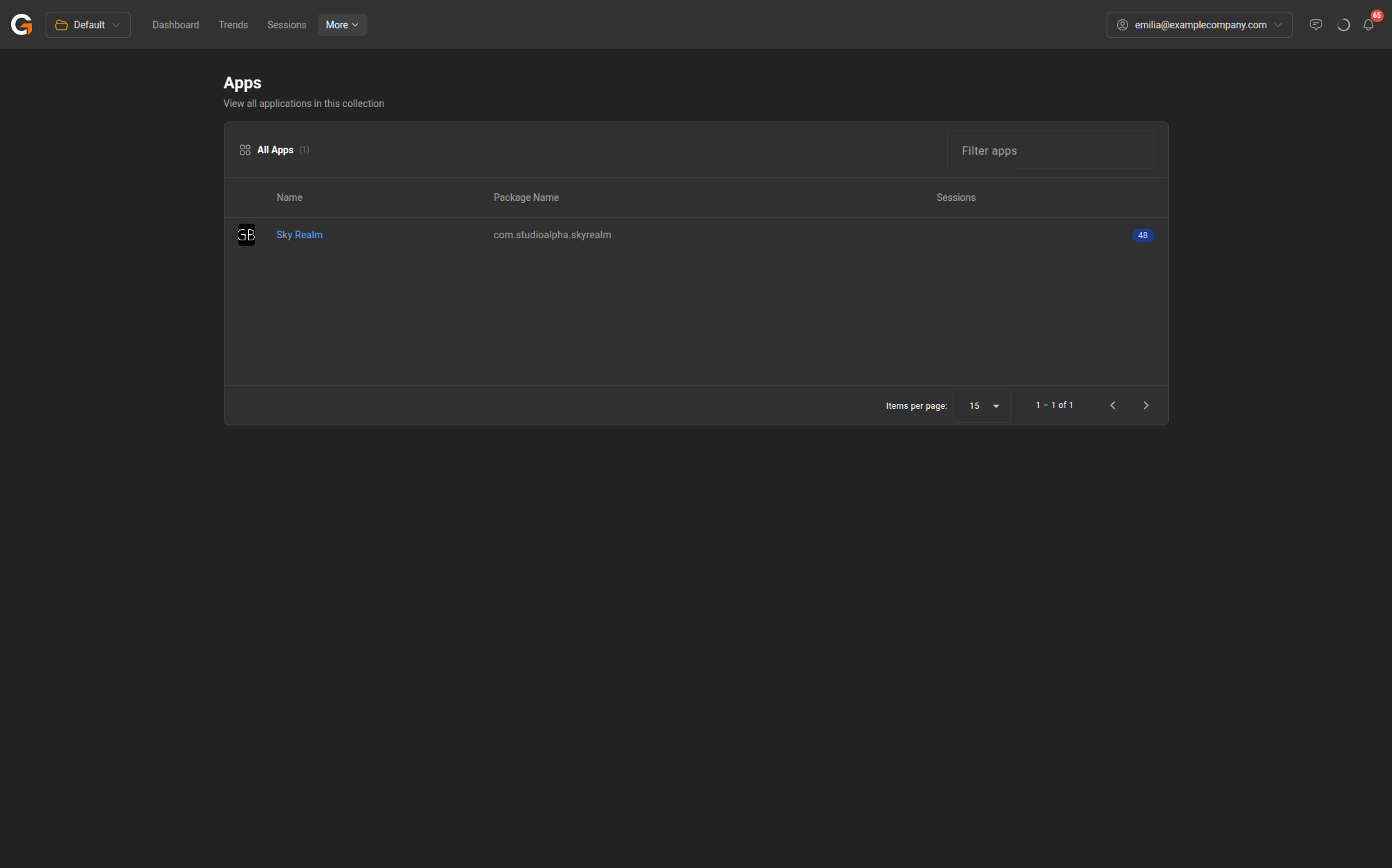 The Apps page lists all applications that have been tested within your active collection. Access it from the More menu in the main navigation bar.