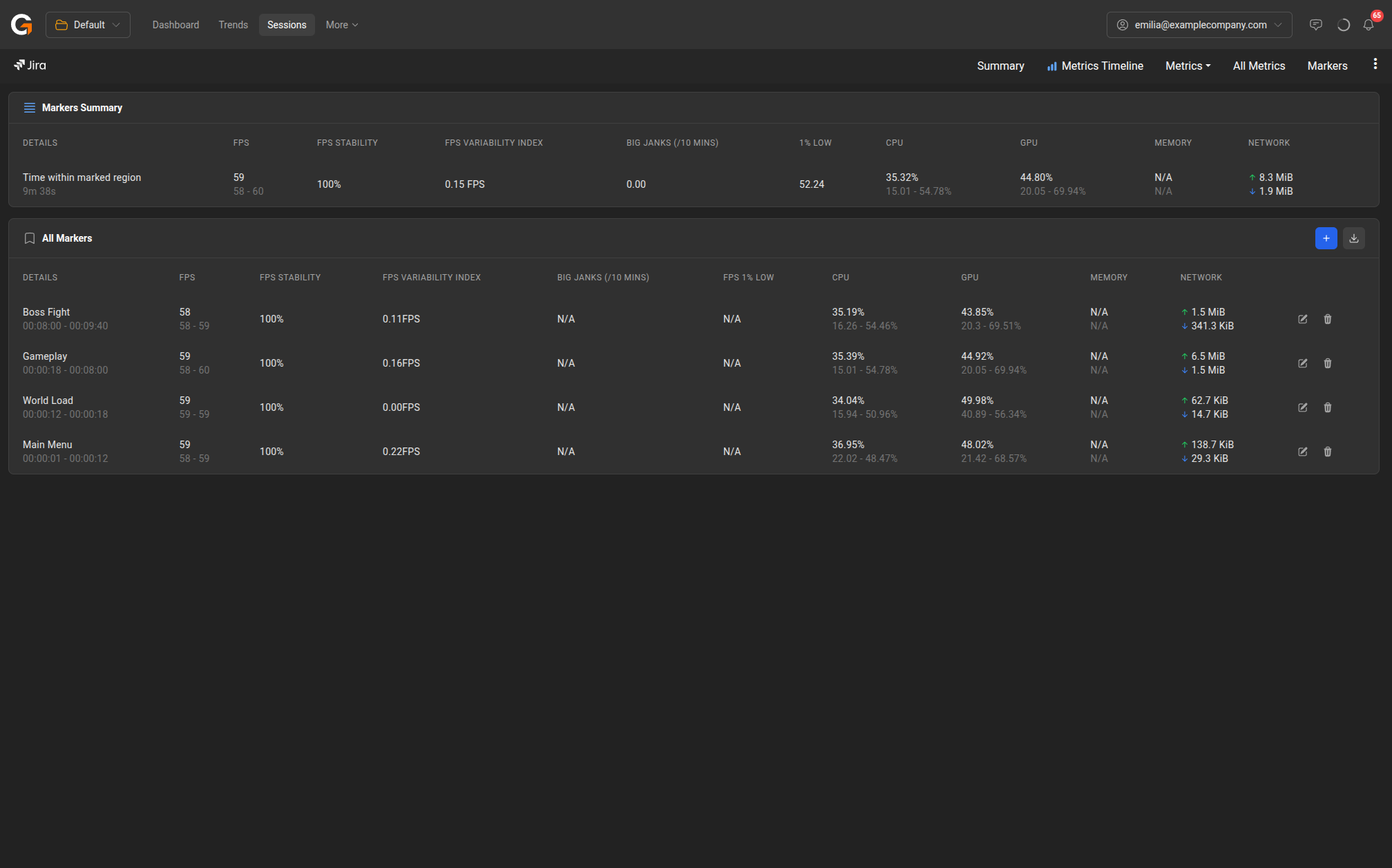 In this case, you can use the Markers tab to set “in” and “out” points that narrow your focus to just one part of the session – excluding any impact from menu screens or other areas of your user experience that you might wish to ignore.